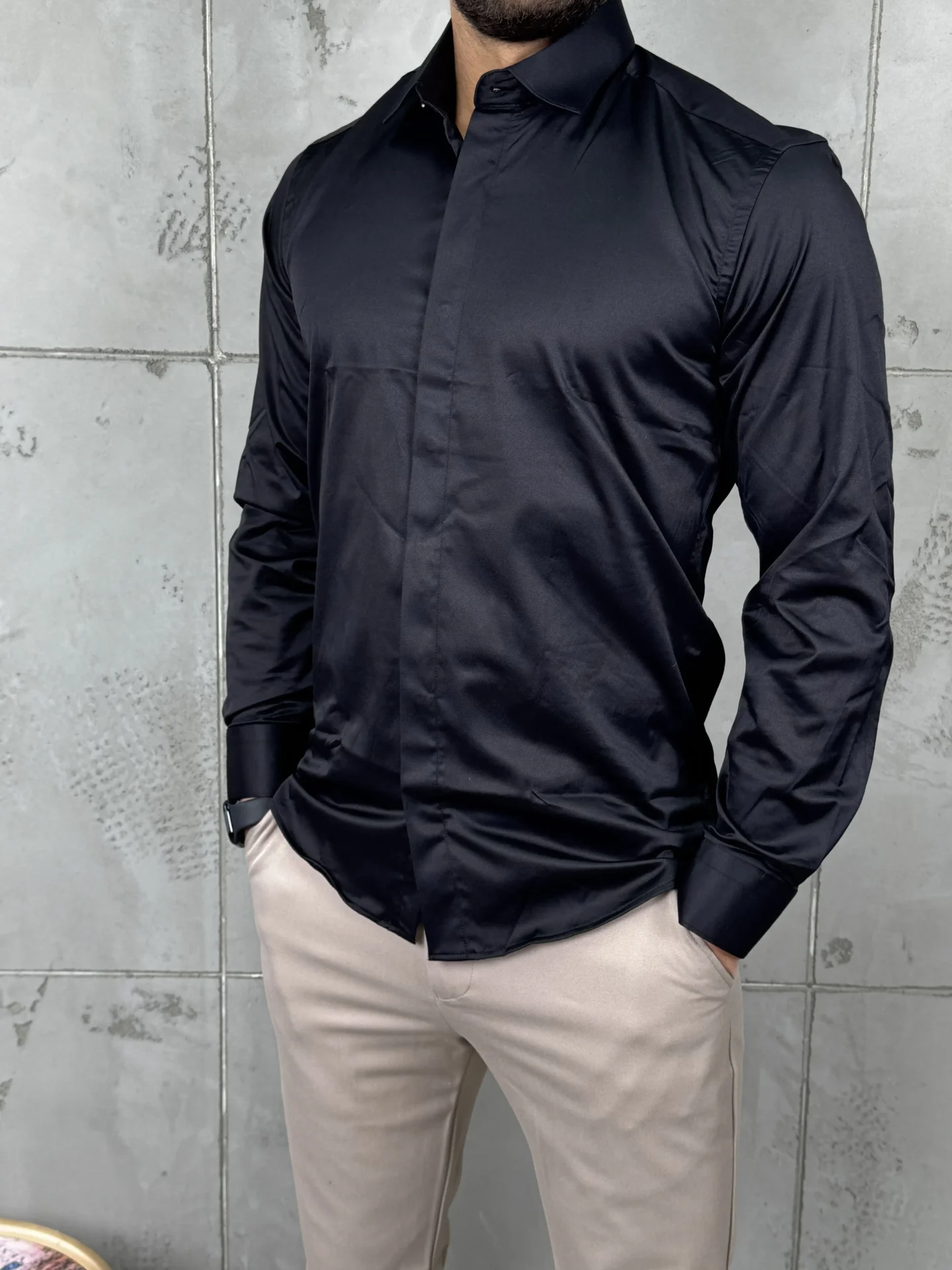 Crna košulja je idealan izbor za muškarce koji žele elegantan i upečatljiv izgled. Moderan kroj naglašava liniju tela, dok materijal sa 2% elastina pruža dodatnu udobnost i slobodu pokreta. Košulja je prijatna za nošenje i pogodna za duže zadržavanje bez osećaja stezanja. Savršeno se uklapa uz svetle i tamne pantalone i odličan je izbor za večernje izlaske, poslovne prilike i formalnije događaje.