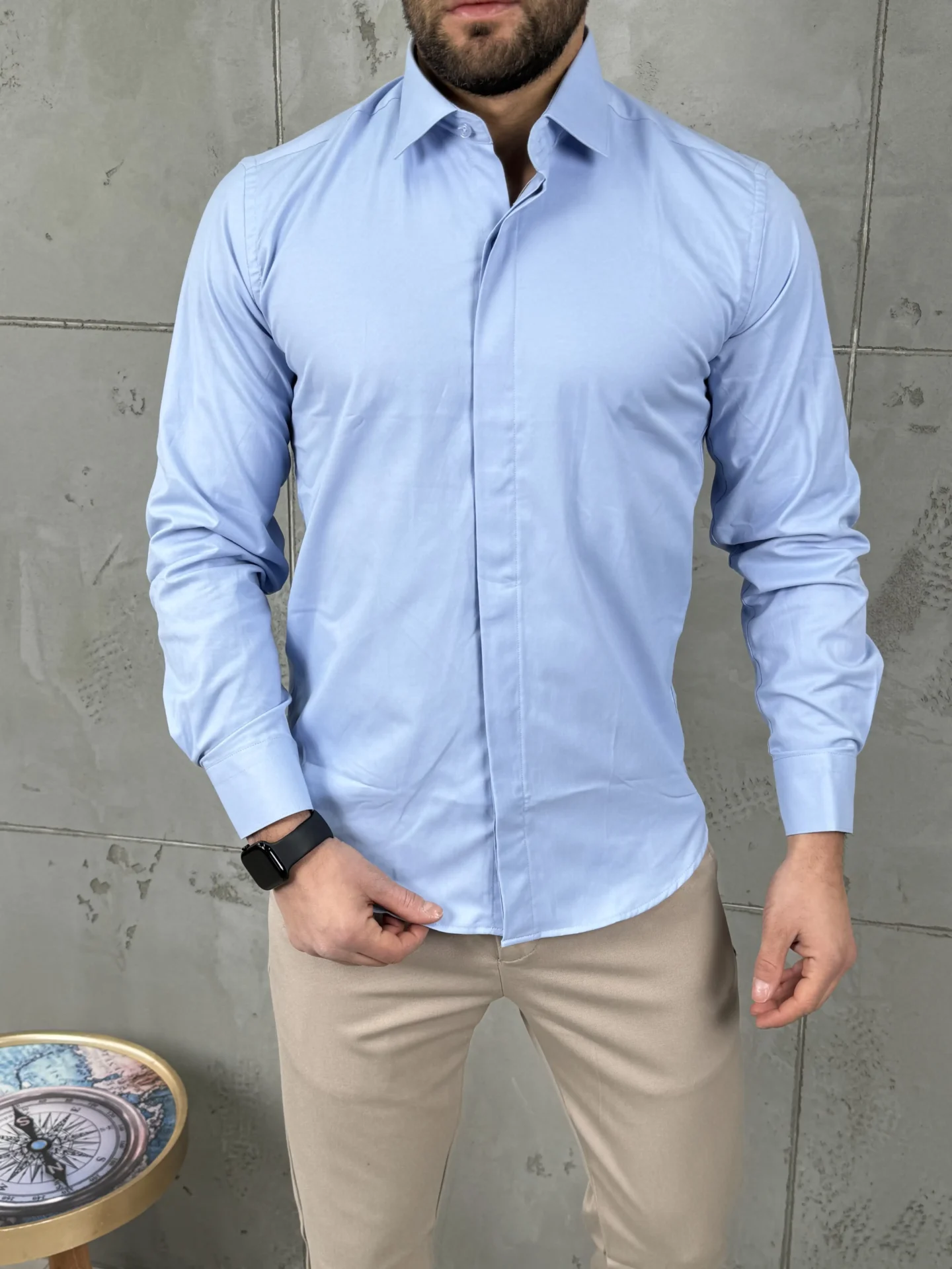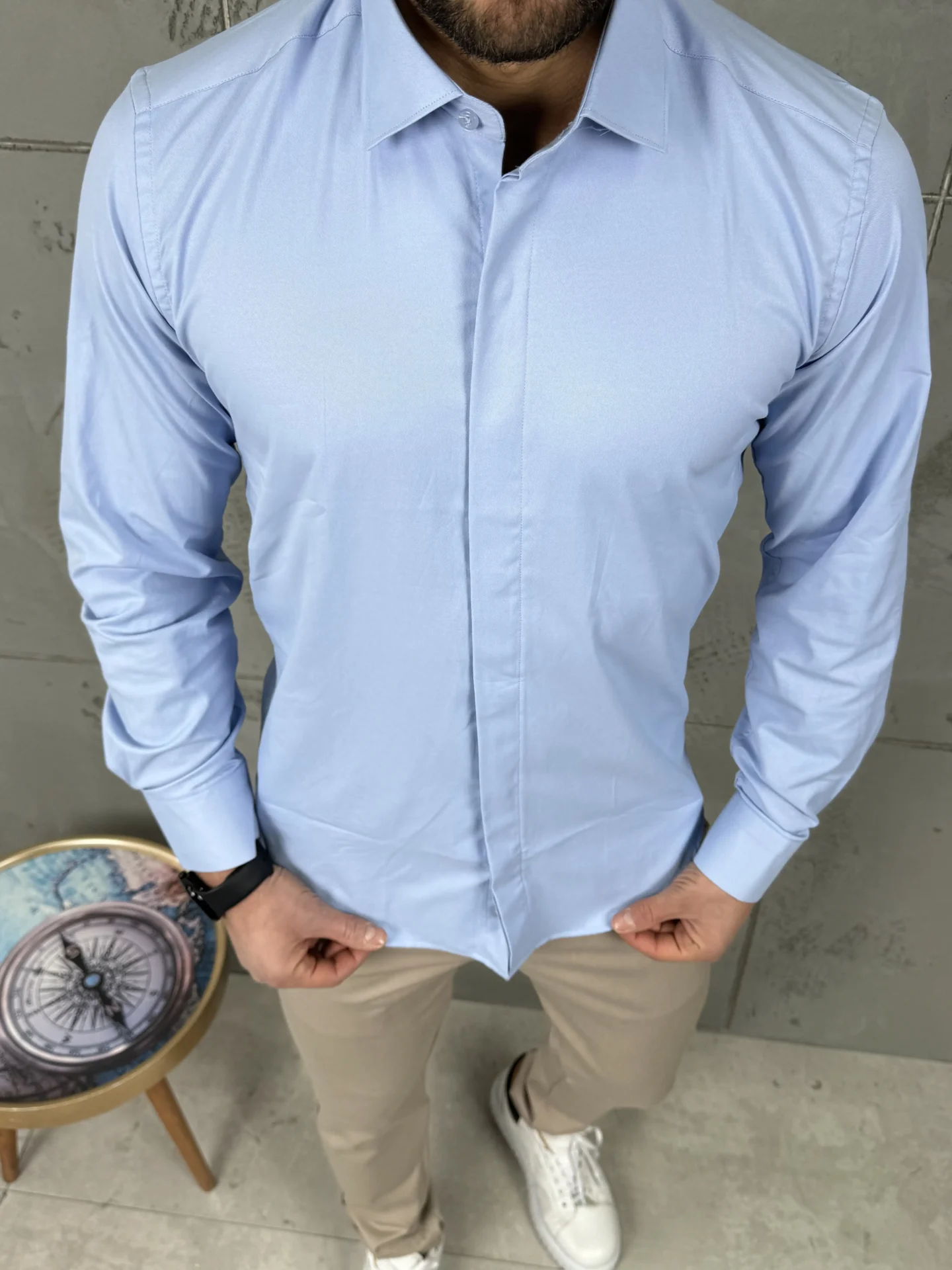 Svetlo plava košulja donosi osećaj svežine i lakoće u svakodnevne i poslovne kombinacije. Zahvaljujući kvalitetnom materijalu sa 2% elastina, pruža dodatnu udobnost i slobodu pokreta tokom celog dana. Moderan kroj lepo prati liniju tela i daje uredan izgled bez napora. Idealna je za posao, sastanke i opuštenije prilike, a lako se kombinuje uz pantalone u neutralnim tonovima.