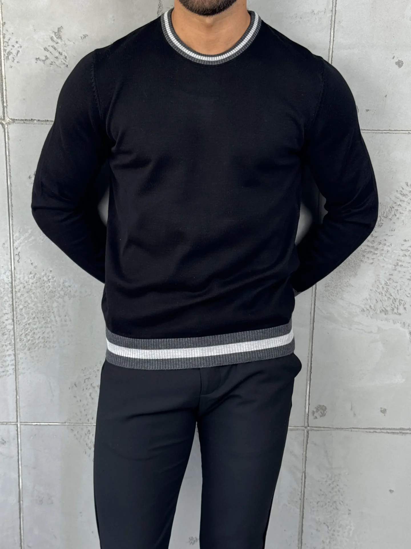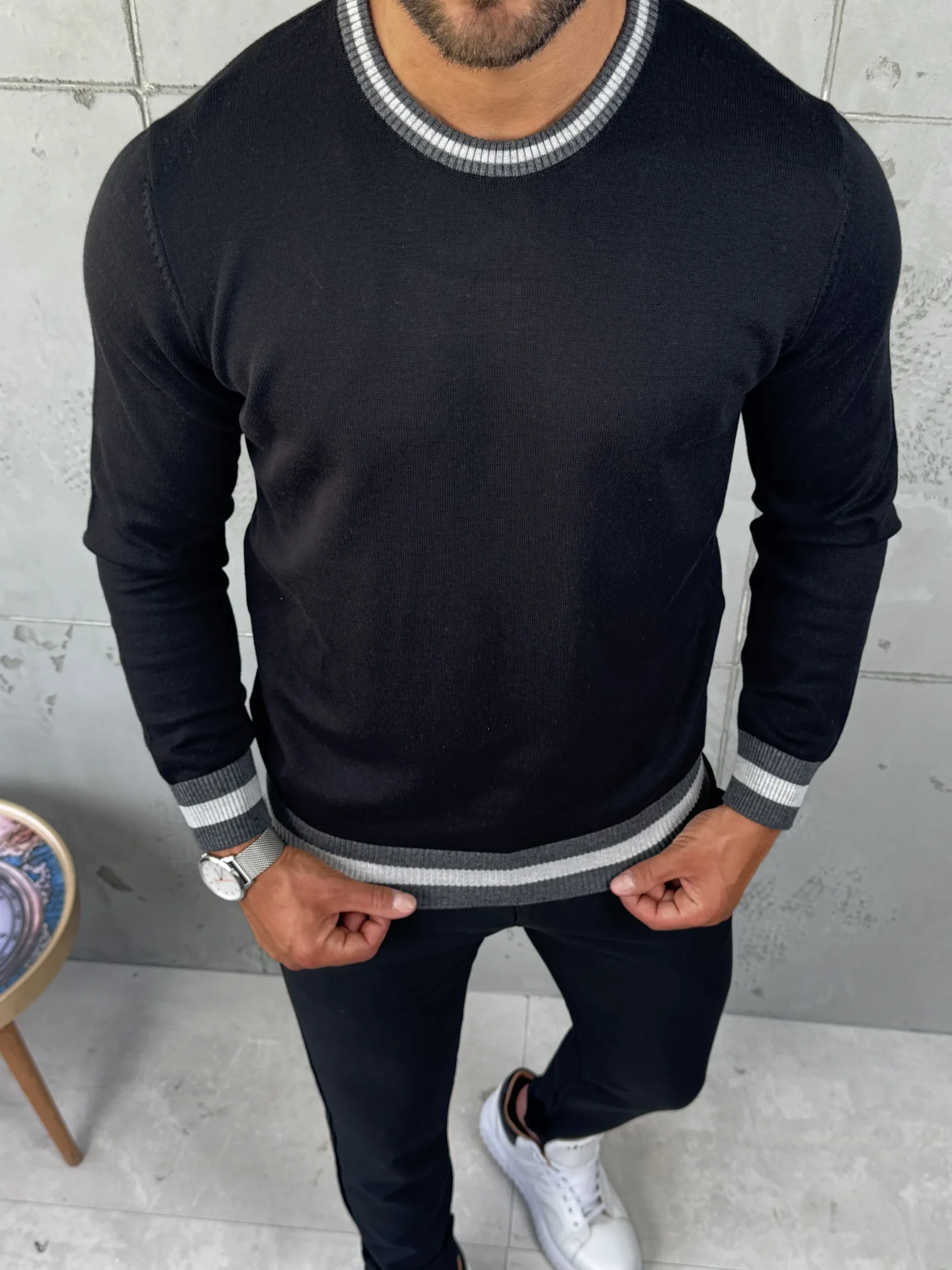 Crni džemper sa sivim detaljima – klasičan i lako uklopiv.
